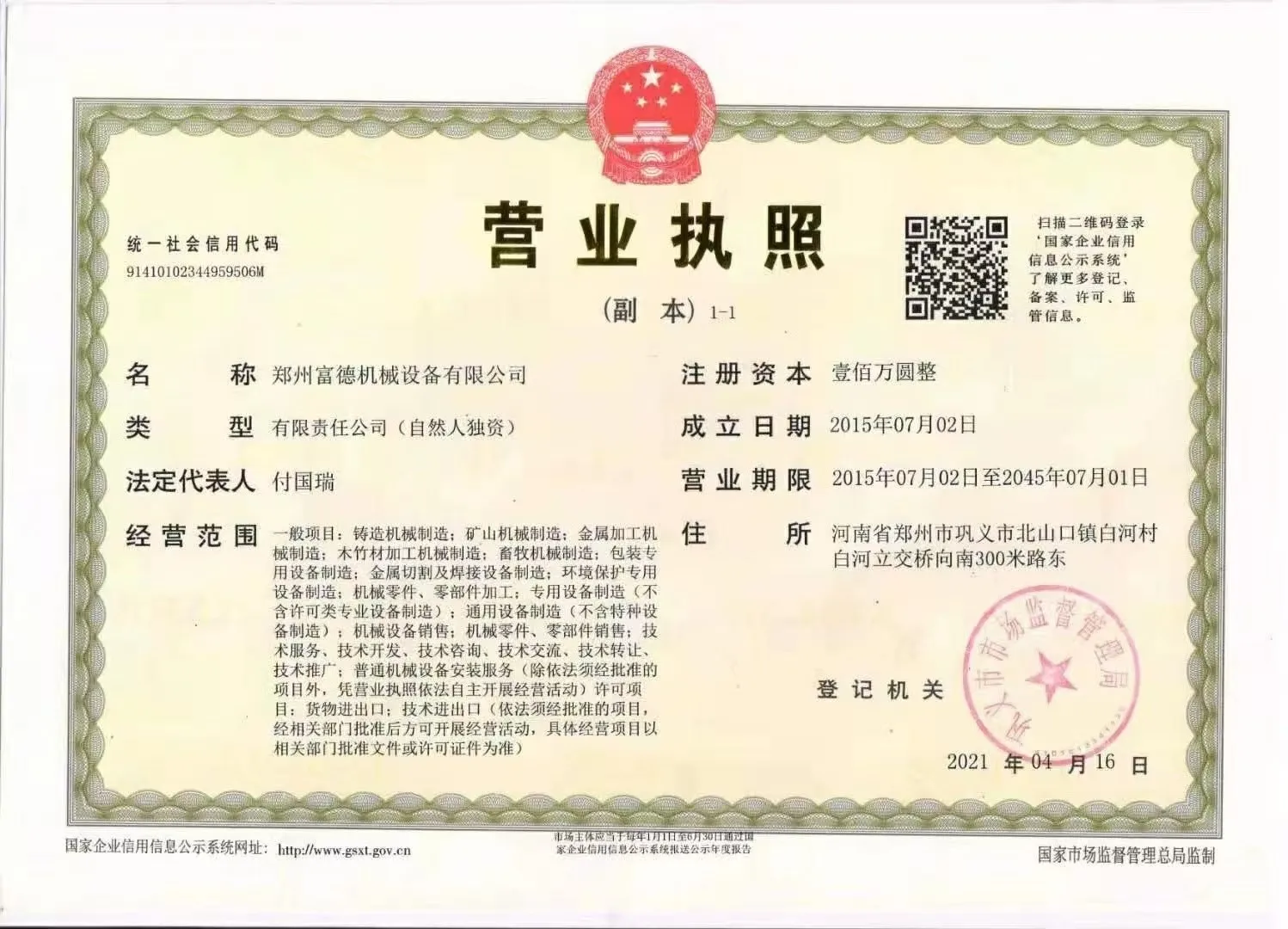 Company Name : Zhengzhou Fude Machinery Equipment Co., Ltd.